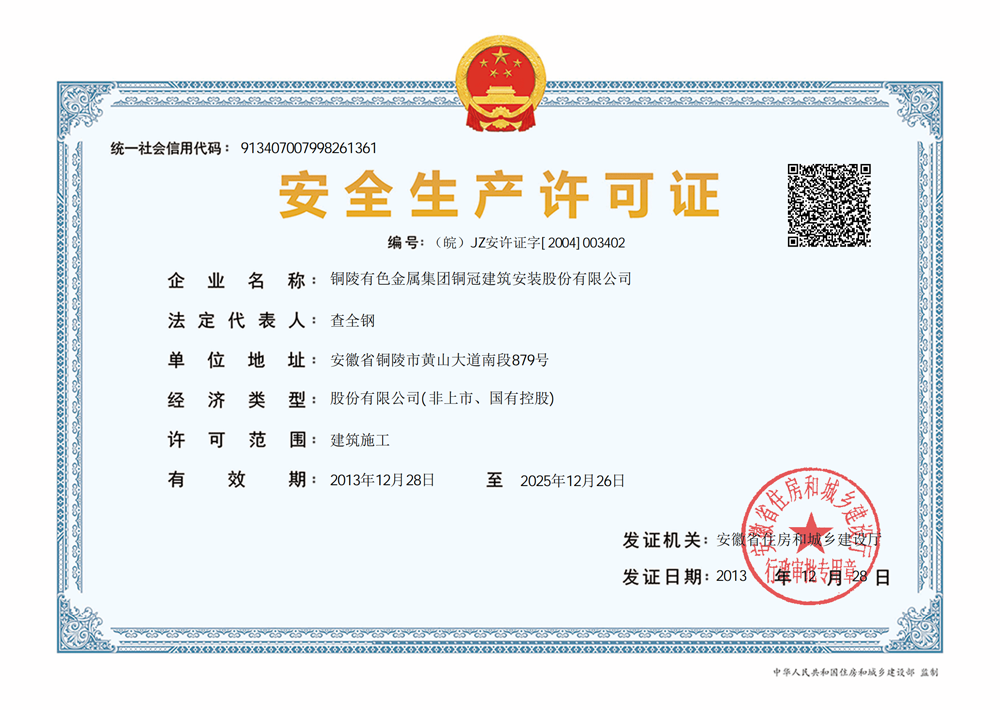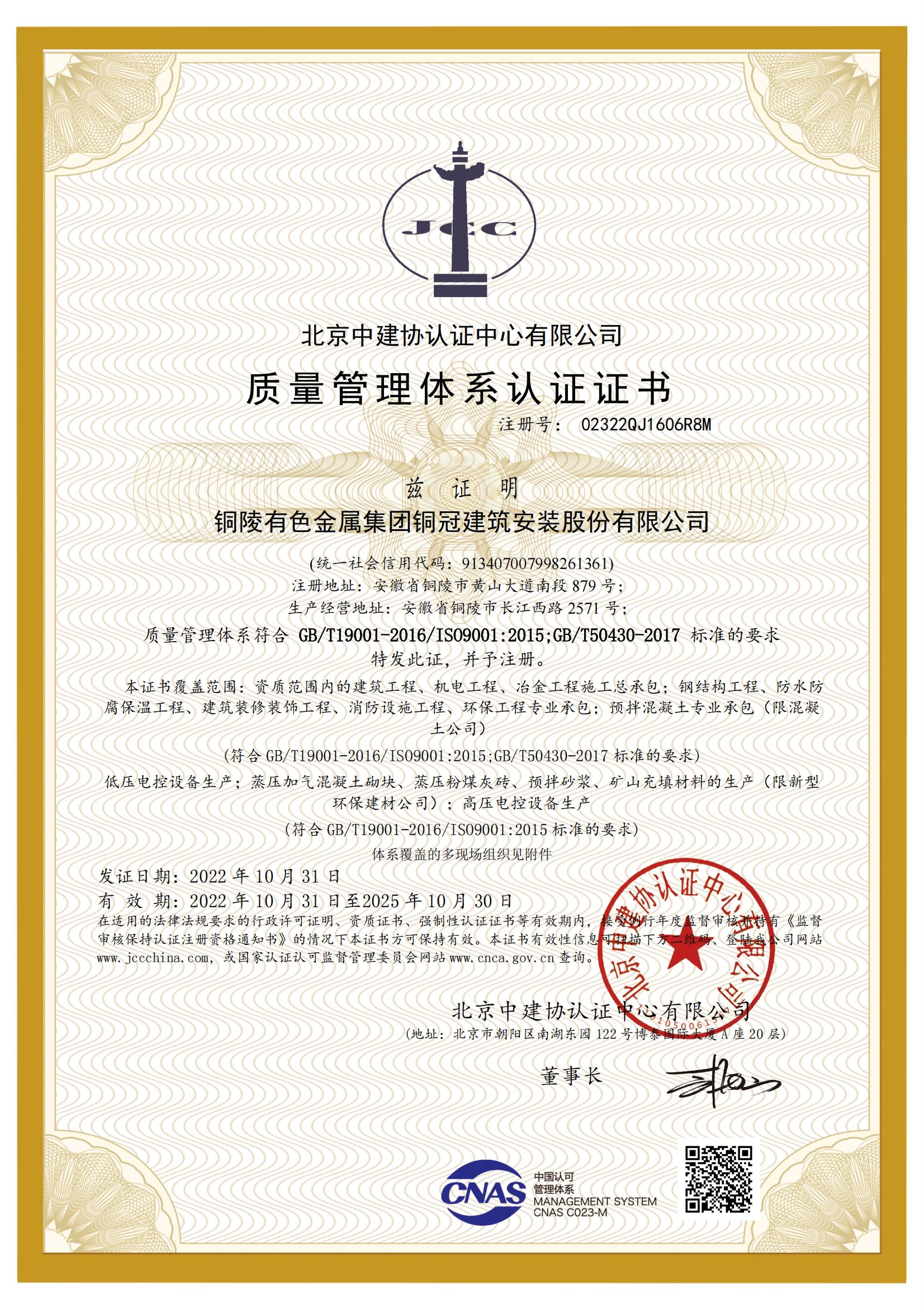 • 有色金屬工業(yè)建設(shè)工程質(zhì)量檢測(cè)機(jī)構(gòu)資質(zhì)證書